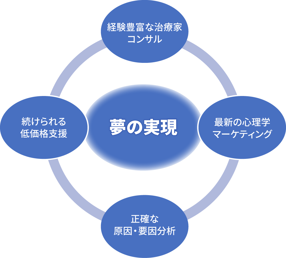 →集客や経営における課題の根源は人です。そして、人の購買意欲・習慣・言動などを研究した心理学マーケティング。この実績ある最新の心理学マーケティング理論で、社長様の院に合わせた、最適なマーケティング方針を提供いたします。
